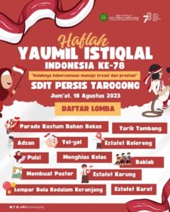 Garut- SDIT Persis Tarogong telah menggelar acara “Haflah Yaumil Istiqlal” pada hari Jumat tanggal 18 Agustus 2023 yang bertempat di Lapangan SDIT dengan mengusung tema “Indahnya kebersamaan menuju kreasi dan prestasi”