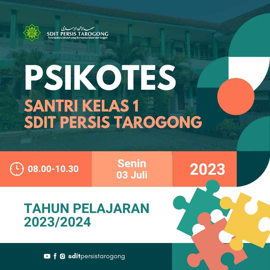 Garut – SDIT Persis Tarogong telah melaksanakan Psikotes Santri Kelas 1 Tahun Ajaran 2023-2024 pada hari Senin, 3 Juli 2023 pukul 08.00 – 10.30 WIB.